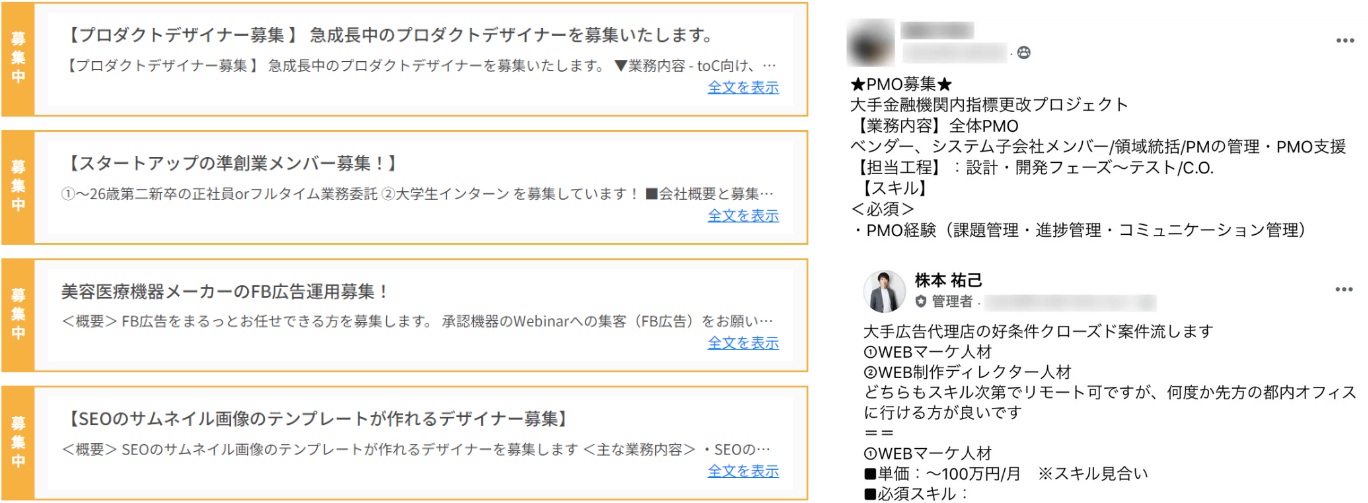 登録フリーランスが閲覧できる専用アプリ及びFacebookグループに掲載されます
