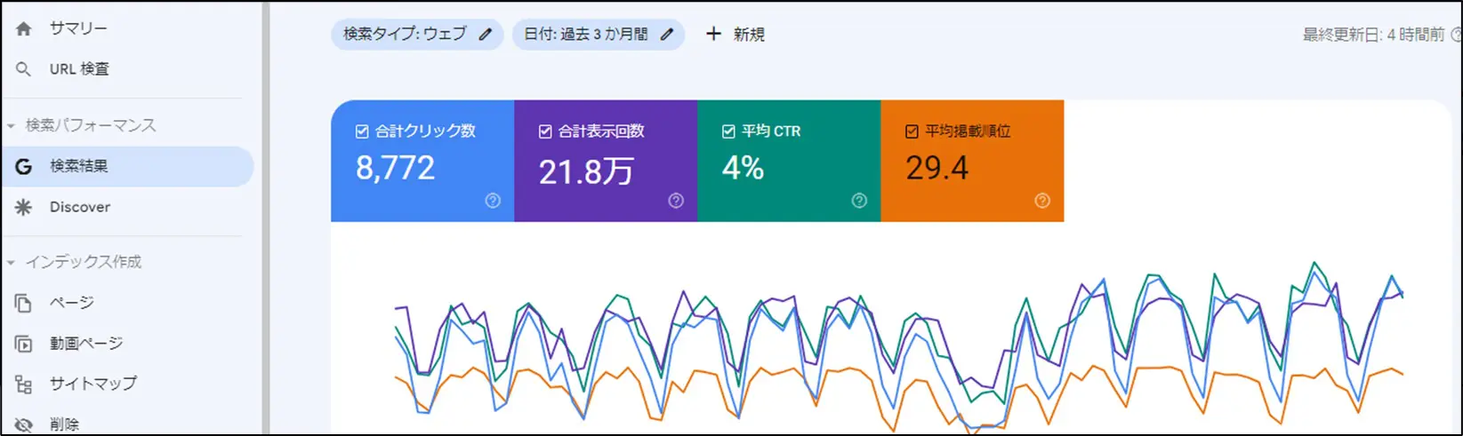 「どのようなキーワードで流入してきたか」「検索結果の掲載順位が何位くらいか」ということが分かり、サイト内の記事作成時の参考になります。