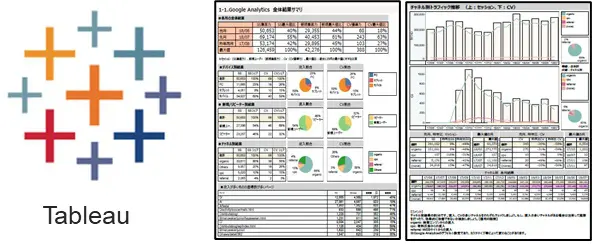 Tableauは、PCのマウス操作だけで簡単にレポート作成ができ、素早くきれいなダッシュボードを作ることができるセルフサービス型のBIツールです。Excelなどの見づらいデータを一目で判断できる図表にし、短時間で共有できるようにします。弊社でも広告運用やGA4などのWEBマーケティングでデータ分析やレポート作成を行っており、Tableau社の担当者の方と定期的にやり取りさせて頂いています。