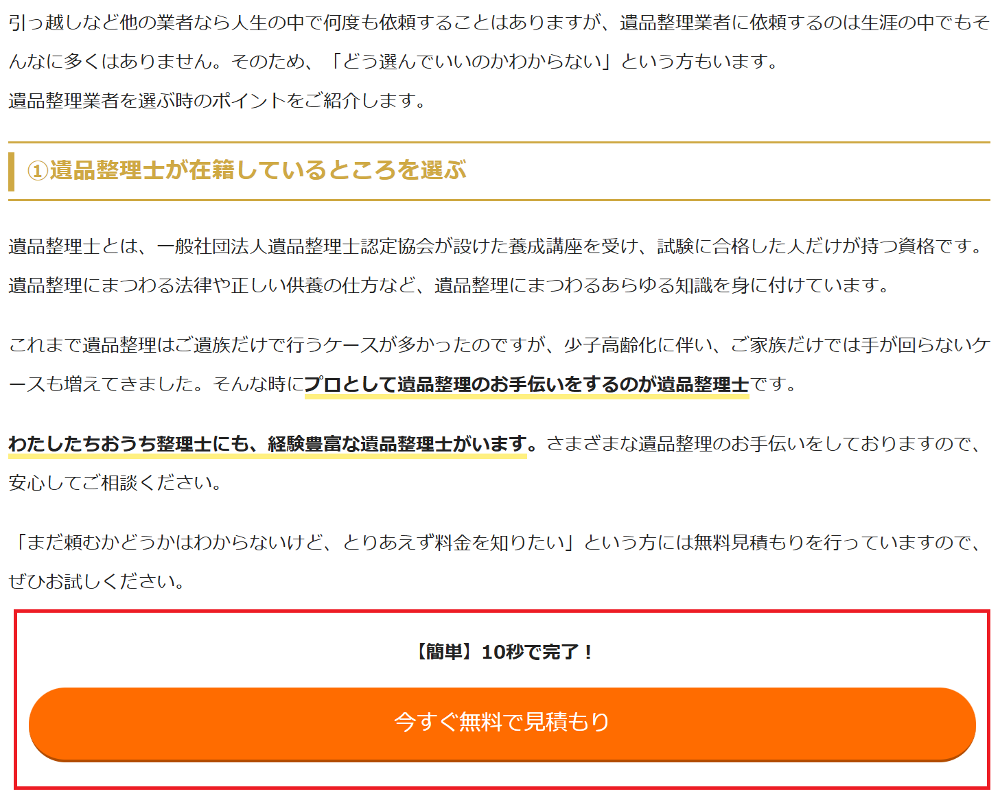 特に遺品整理は故人の想いに触れるデリケートな業務であるため、スタッフの人柄や誠実さが伝わる情報はCVR向上にも直結します。