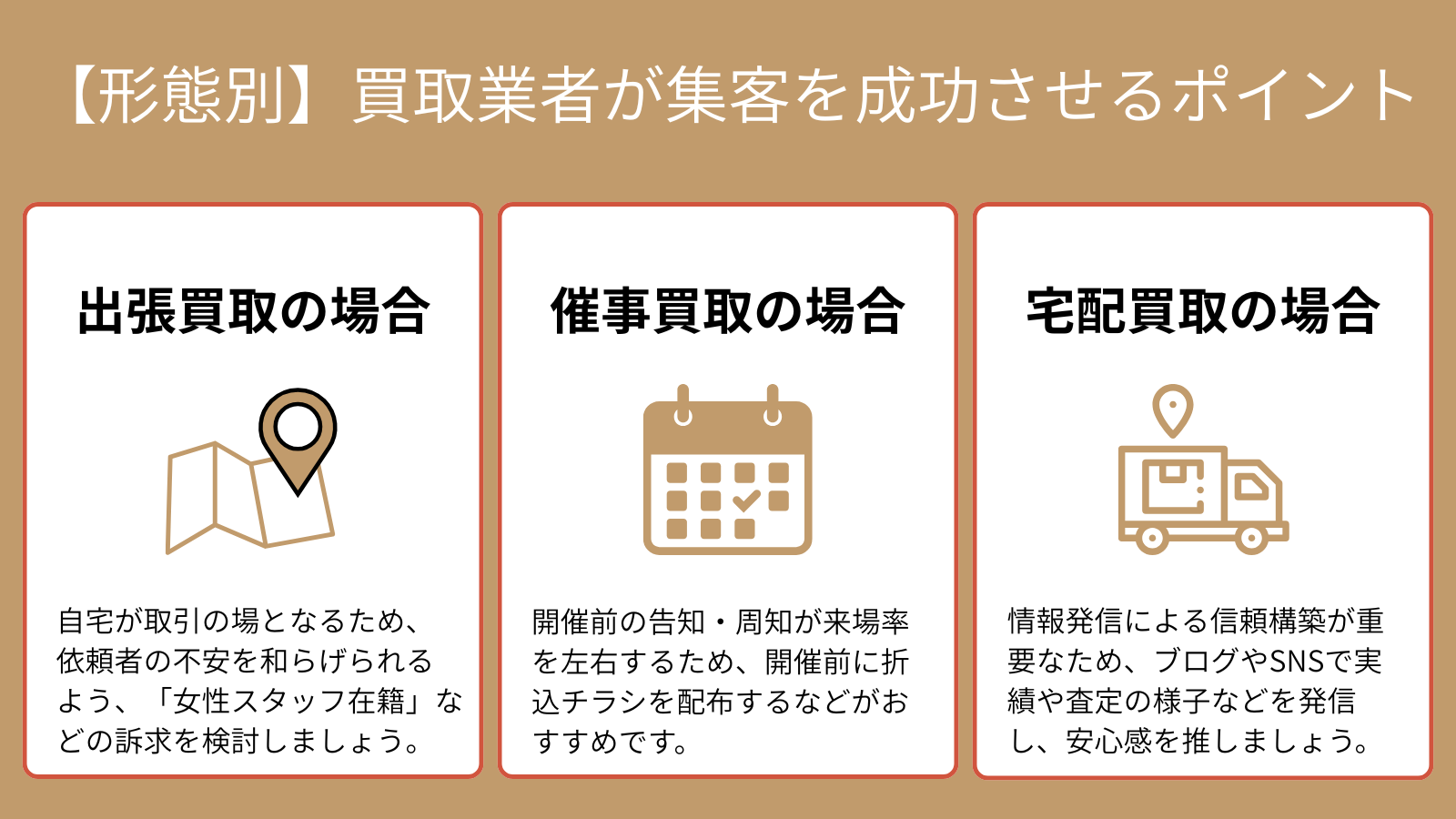 【形態別】買取業者が集客を成功させるための3つのポイント