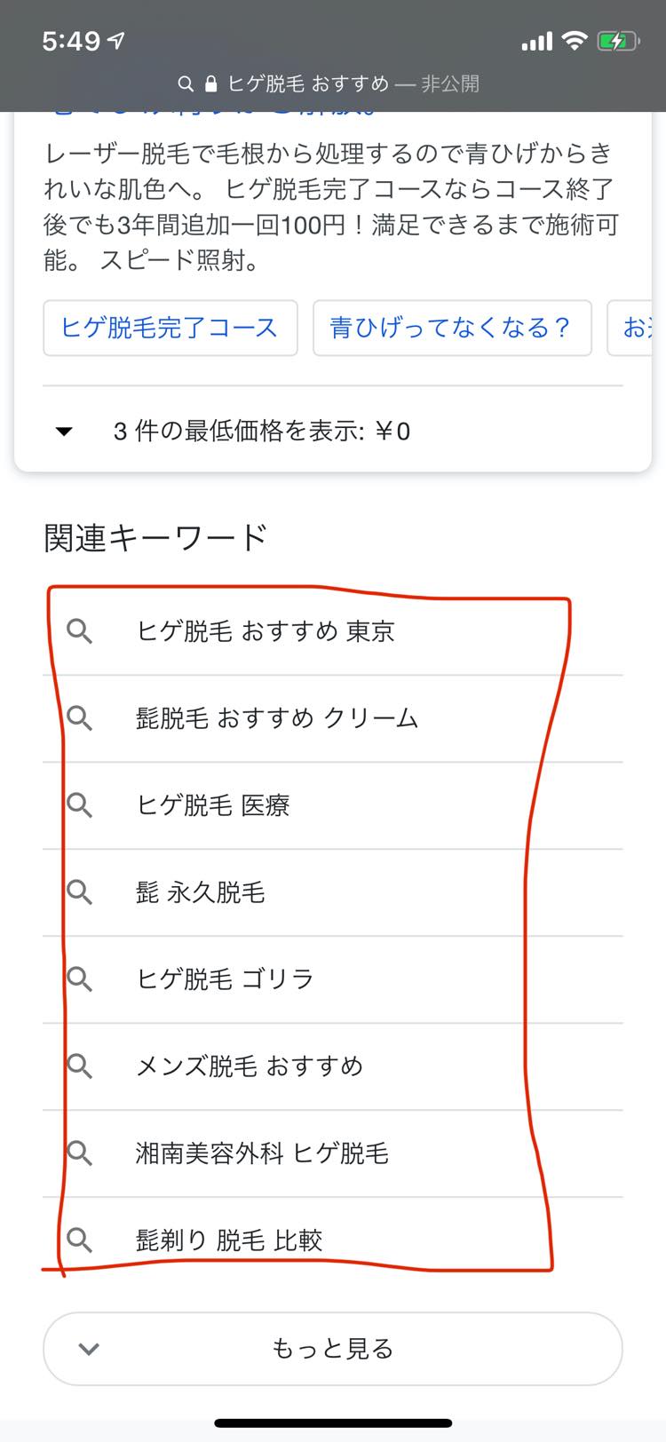 この辺のサジェストKWDで上位表示できればメインKWDの「ヒゲ脱毛 おすすめ」でも上がりやすくなります。