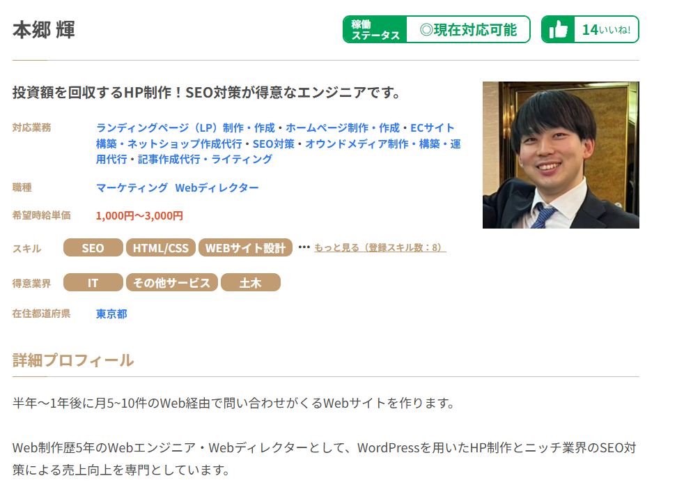 半年~1年後に月10件以上、有効な問い合わせがくるWebサイトを作ります。 エイチリンク株式会社代表。SEO・Web制作歴7年目のWebエンジニア・Webディレクターとして、WordPressを用いたHP制作とニッチ業界のSEO対策による売上向上を専門としています。 HP/LP制作実績は100サイト以上。パーソナルジム、土木工事会社、不動産会社など多業種に対応してきました。SEO対策においては、ゼロから立ち上げた新規サイトをニッチ市場でサービスキーワード検索1位に導き、月間1.5万PV、月商500万円の売上を実現した実績があります。 エンジニア知識を持ったSEOディレクターとして、大量のページを作成するようないわゆるデータベース型のサイトの構築も得意です。 競合が対応しきれないような細かいキーワードまで対策して、お問合せにつなげる戦略でお客様の売上に貢献します。 少し珍しいキャリアの特徴として、Fリーグ(フットサル日本トップリーグ)のエスポラーダ北海道、バサジィ大分でプロ選手として活動しながらWeb制作の経験を積んできました(バサジィ大分在籍時は完全プロ契約のため1年間休職)。 アスリートとしての経験で培った「やると決めたら徹底的にやり抜く」精神で、お客様のプロジェクトに全力で取り組みます。