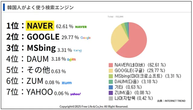 韓国人は主に韓国の情報はNAVERで検索し、グローバルな知識検索や情報入手にはGoogleを使っています。