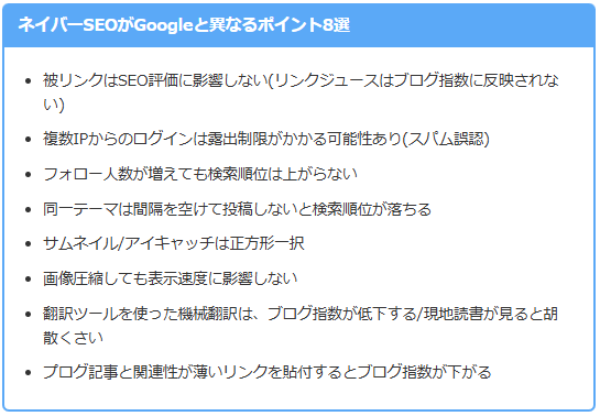 - NAVER自体で作成した投稿が上位表示される。外部で作ったリンクは上位表示されにくい。