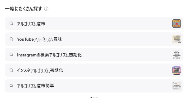 類推レコメンドは、「一緒にたくさん探す」(함께 많이 찾는)という表示形式で、ユーザーの検索意図を分析して、一緒に見られた様々な検索クエリを表示する機能です。