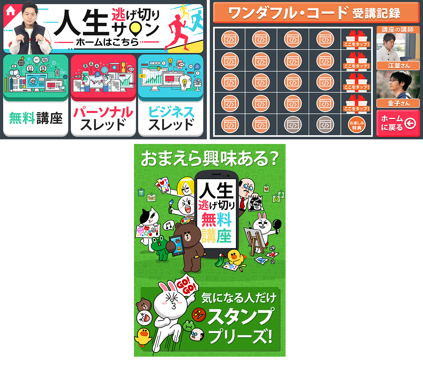 具体的にはLステップというLINE配信システムを使い、フリーランスビジネス診断の構築、人生逃げ切りサロンへの誘導DRMの作成、およびサロン内の副業講座のLINE教育&セールス進捗アプリの開発、有料動画コンテンツローンチのためのLP制作を行いました。