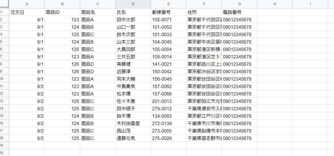 Query関数を使ってあげると、このように注文データがヤマトの型に変更してあげることができました。