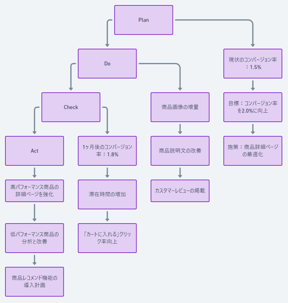 これらの例からわかるように、PDCAサイクルは様々なWebマーケティング施策に適用可能です。重要なのは、各ステップで具体的な行動を取り、データに基づいた意思決定を行うことです。