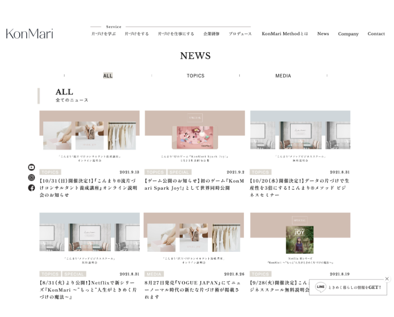 最近Netflixで片づけシリーズ第2弾「人生がときめく片づけの魔法」が公開された、こんまりさんこと近藤麻里恵さんの日本法人、KonMari メディアジャパンのHPのバナーデザインやイラストのご依頼をいただきました。