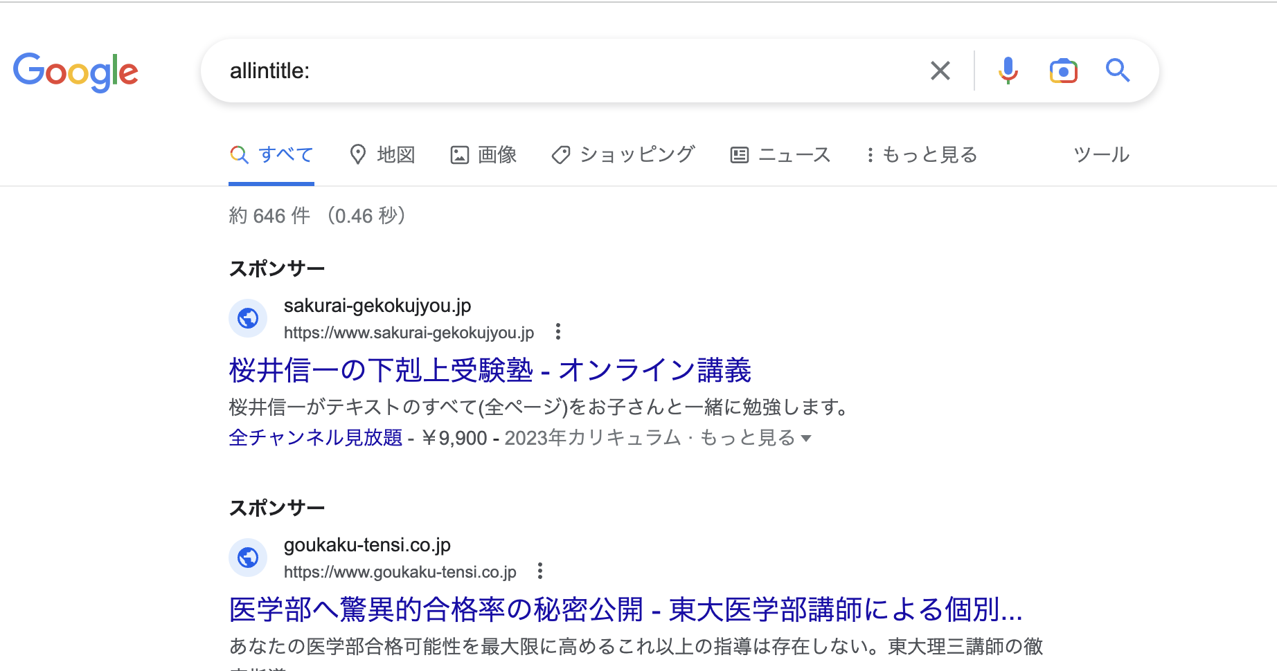 検索で用いる特殊なコマンドであるallintitleの使い方を解説しました。